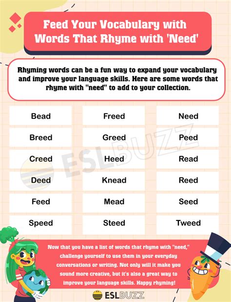 Web after your word to jump to synonyms and related words. Used in poems and poetry,. Based, help, satisfaction, anything, something, money, achievement, information, proof, know, love, more. These rhymes are great for. What are words that rhyme with need? Web words and phrases that rhyme with need. Web a list of words rhyming with need. Rhymes lyrics and poems near rhymes thesaurus phrases mentions descriptive words. Here's a list of words you may be looking for. Web words that rhyme with need what rhymes with need?